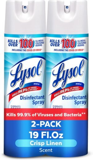 EPA #777-99. Lysol Disinfecting spray is essential for households with pets and kids, and helps protect your family and keep them healthy. This disinfecting and sanitizing spray is designed to provide germ protection and kills 99.9% of viruses and bacteria on hard and soft surfaces, when used as directed. From counters to couches, Lysol kills over 100 illness causing germs in high-touch areas. This odor eliminating spray kills 99.9% of over causing bacteria, and works as an upholstery deodorizer, shoe deodorizer, carpet deodorizer, and more. Neutralize tough odors, kill germs, and leave behind a fresh, crisp linen scent. Lysol is the #1 Trusted Disinfectant Brand.