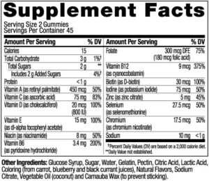 • DELIGHTFULLY TASTY: These men’s multivitamins come in Blackberry Blitz flavor with other natural flavors with no synthetic colors or flavors and gluten-free. 90 gummies per bottle (45 day supply)