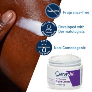 Developed with dermatologists, CeraVe Skin Renewing Night Cream is formulated with biomimetic peptides, hyaluronic acid, and three essential ceramides that work together to lock in skins moisture an help restore you skin’s protective barrier overnight. Wake up to skin that looks refreshed and renewed. Â This non-greasy, intensely moisturizing skin renewing night cream is designed to soften and renew the look of tired skin.