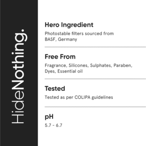 - This sunscreen is formulated with 4 very effective UV-filters, namely, Uvinul T 150, Avobenzone, Octocrylene and Titanium Dioxide to provide protection from UVA & UVB
