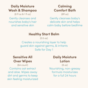 - .5-ounce tube of Aveeno Baby Daily Moisture Healthy Start Balm. Made with prebiotic oat, balm leaves a nourishing layer to help moisturize baby’s developing skin. Gentle enough to start using at day 1 of life for proactive skincare